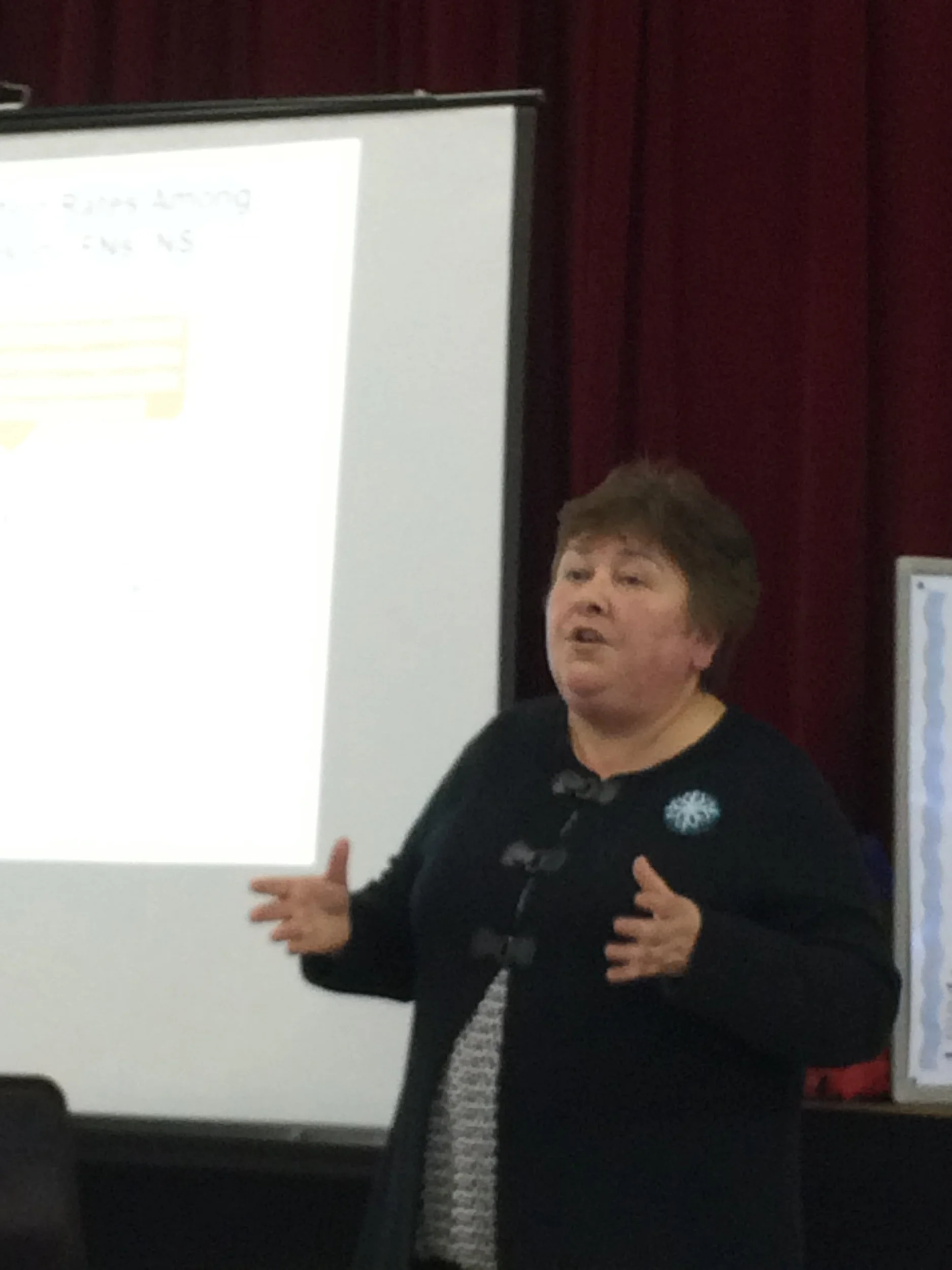 The meeting was about sharing and learning and Sharon Rudderham, Health Director with Easkasoni First Nation did an excellent presentation on the health statistics of Eskasoni First Nation residents compared to the rest of Nova Scotia. The stats were startling and eye opening for the Northside the Lakes CHB members. The point was brought home that health means not only the absence of disease or injury, but also physical, mental and social well-being.