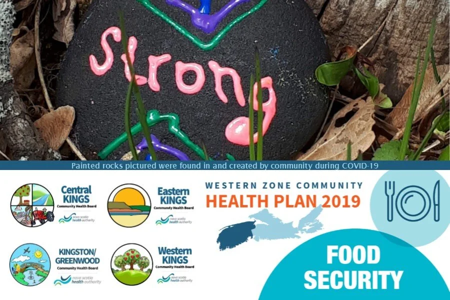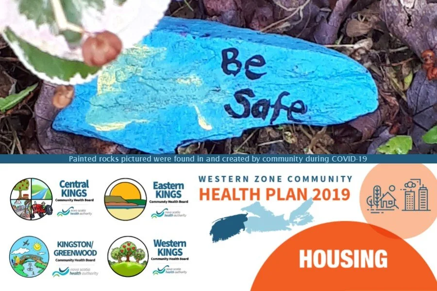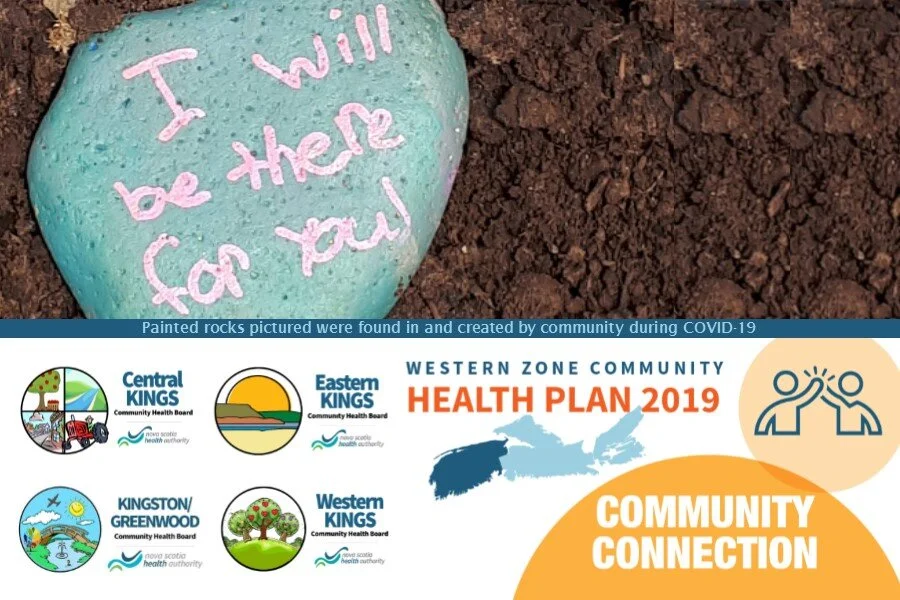 The CHBs in Kings and Annapolis Counties, Central Kings CHB, Eastern Kings CHB, Kingston-Greenwood CHB, Western Kings CHB & Annapolis CHB, have launched a postcard project highlighting the four priority areas in the Western Zone Community Health Plan. Sparked by and showcasing artwork painted on rocks placed in the community, the postcards provide awareness and action that can be taken to address each priority area; food security, housing, community connection and recreation & wellness.